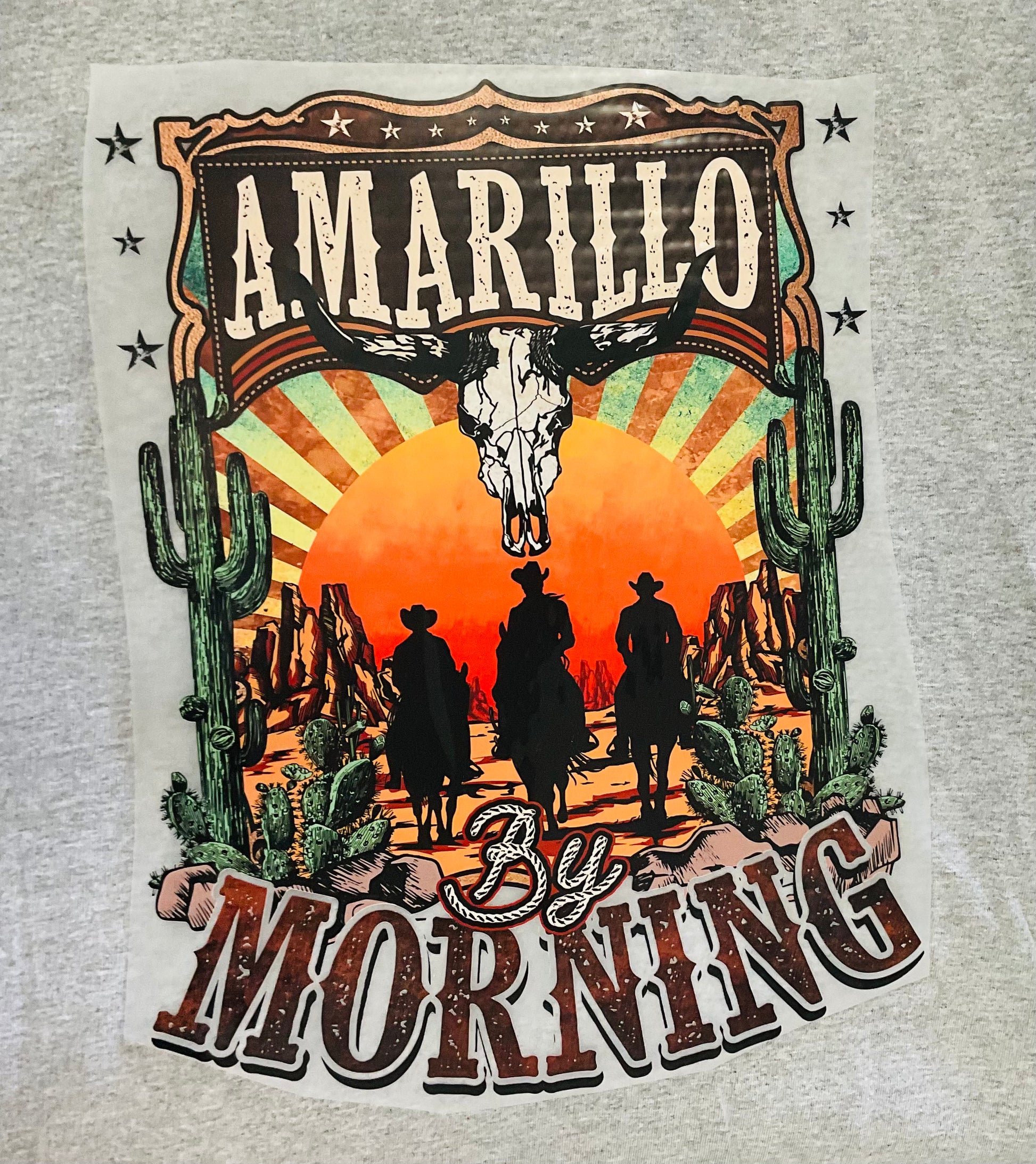 This Amarillo By Morning Tee is made on a grey tee for a classic and timeless look. The grey color provides versatility and pairs well with any outfit.