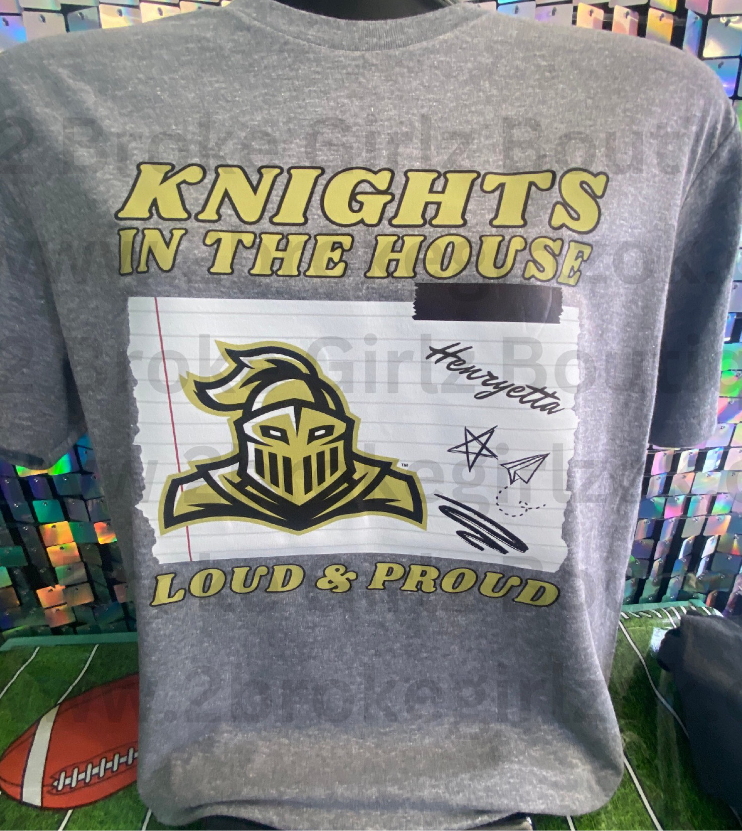 Introducing our Knights in the House Tee, perfect for game day. Show your support for your favorite team with this stylish and comfortable tee. Made with high-quality materials and designed with the classic knight logo, this tee is a must-have for any true fan. Go knights!