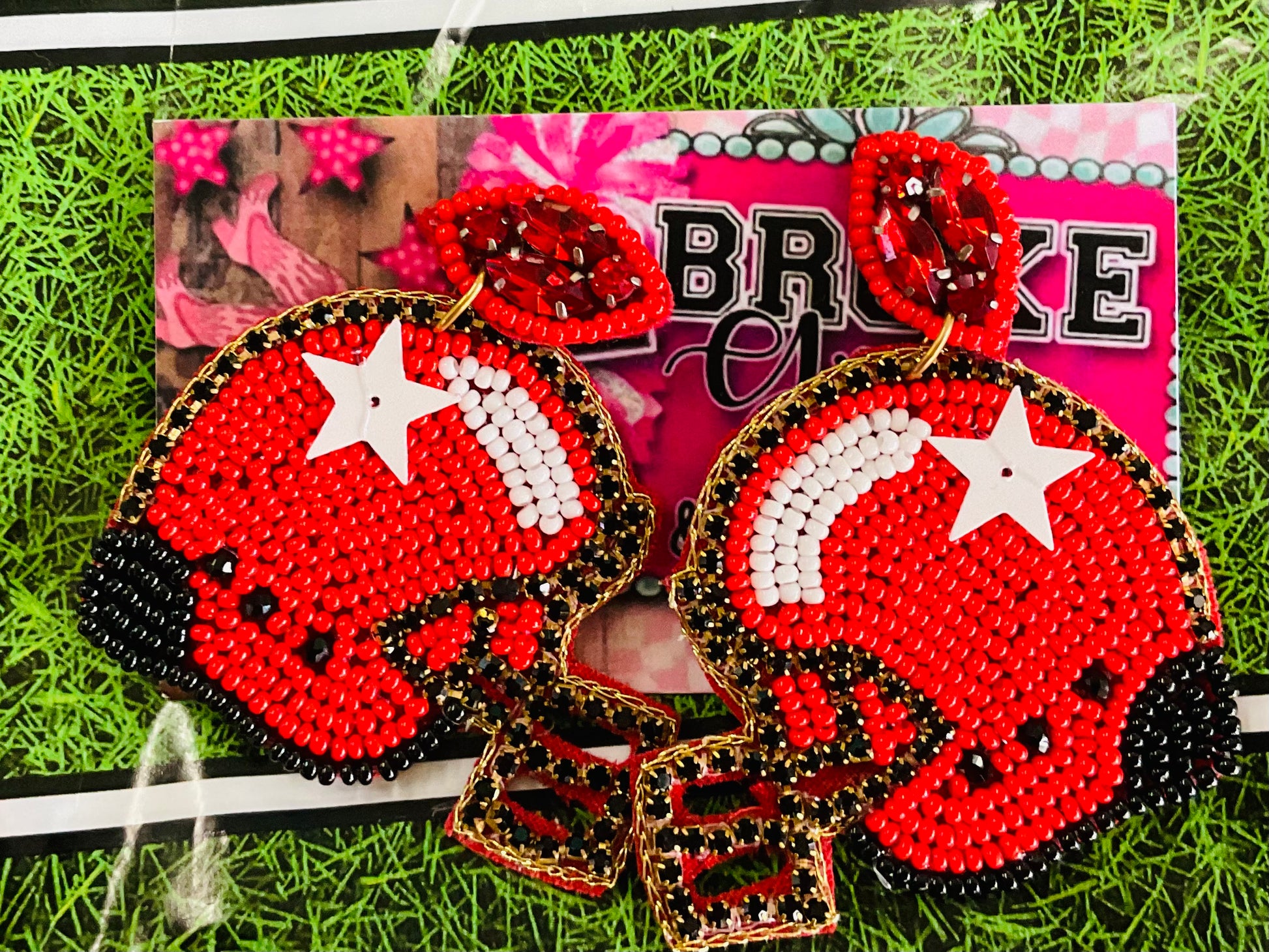 These Red Helmet Earrings are the perfect accessory for any fan on game day. Made for football enthusiasts, these earrings feature miniature red helmets that are sure to make a statement. Add these to your game day outfit and show your team pride in a unique and stylish way.
